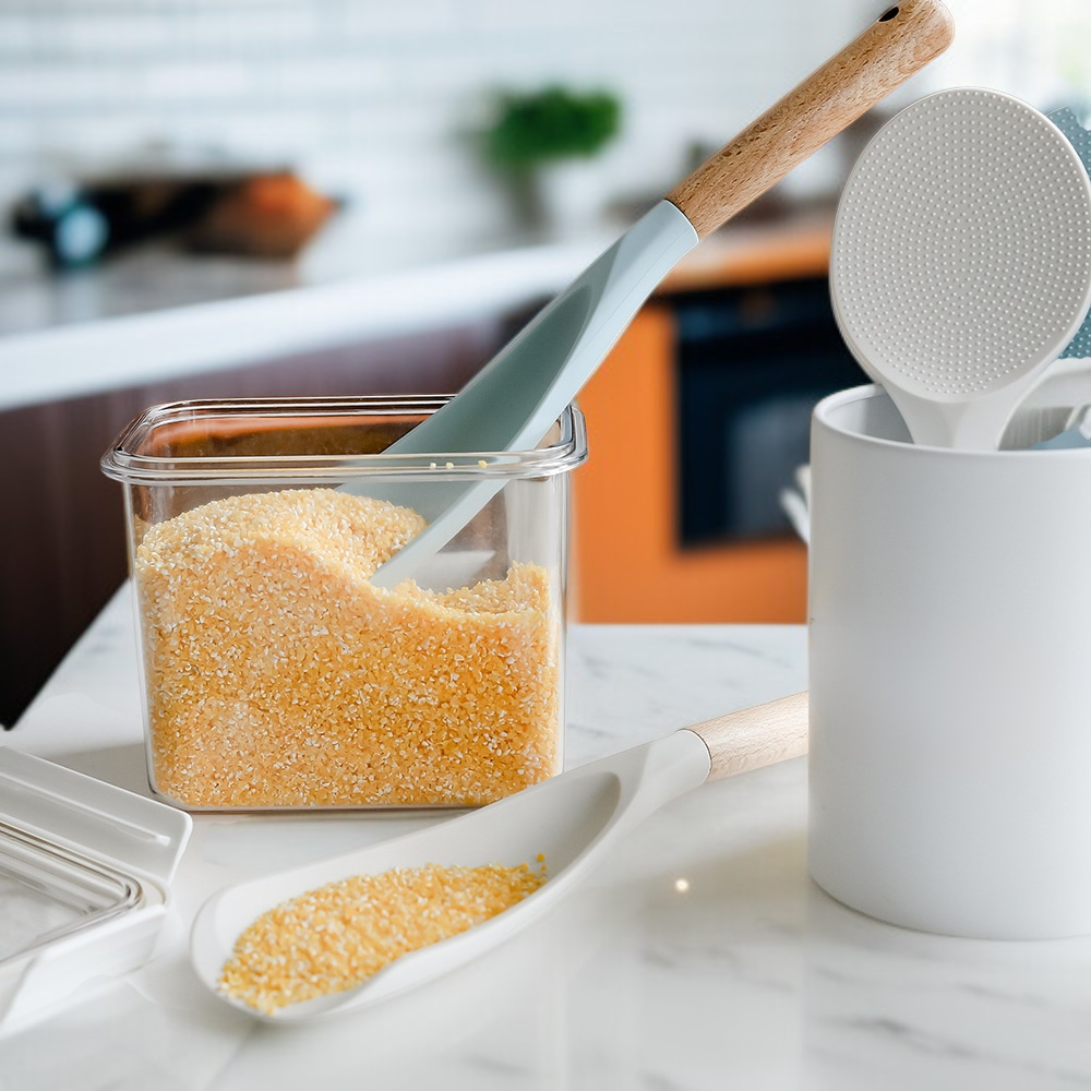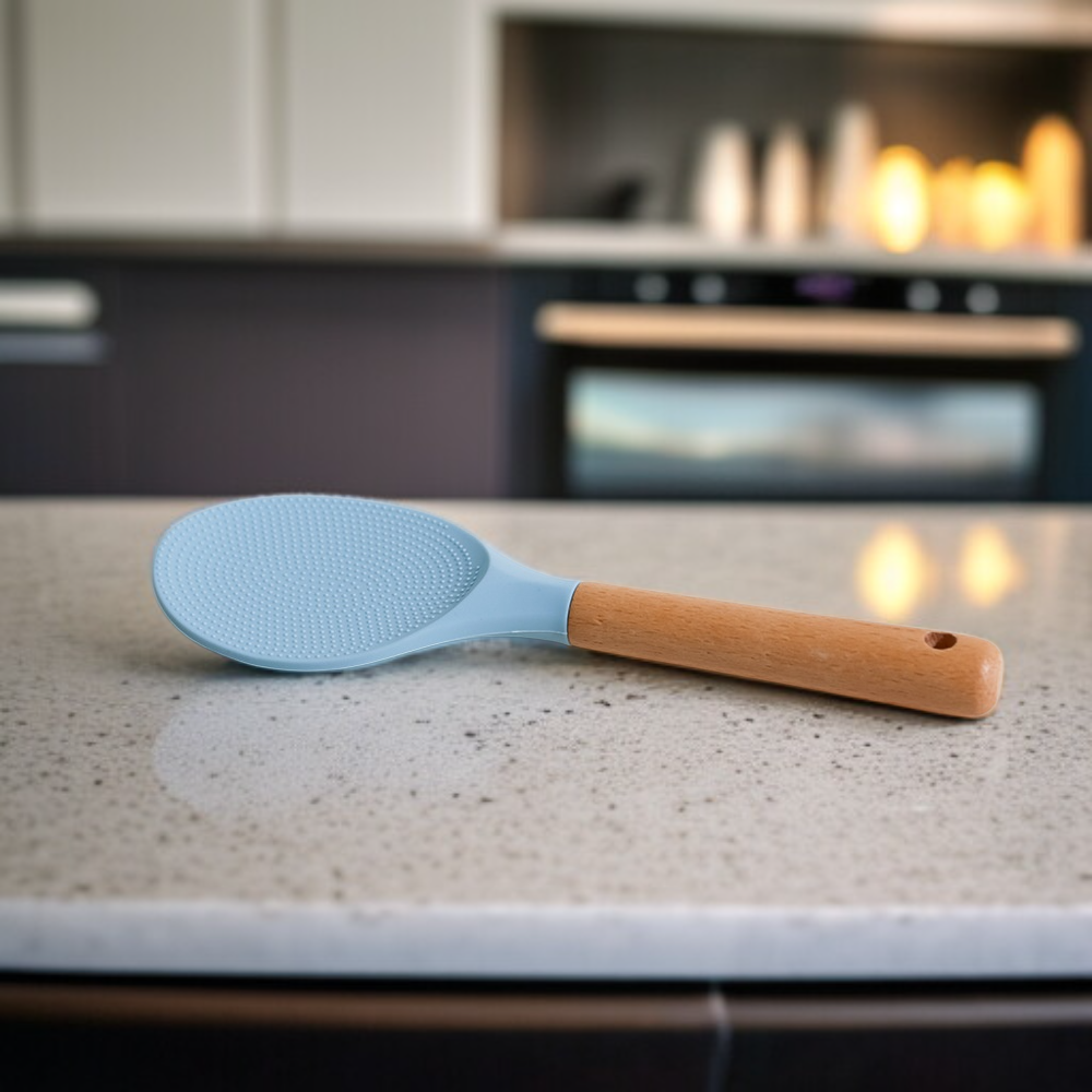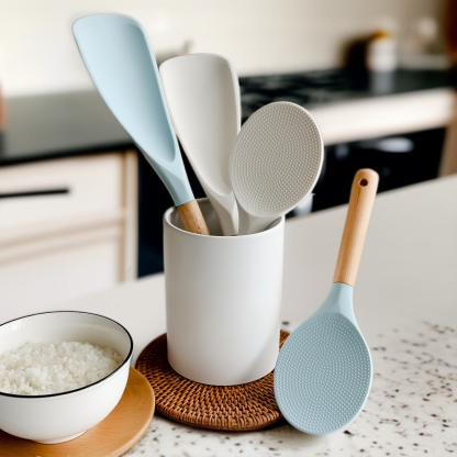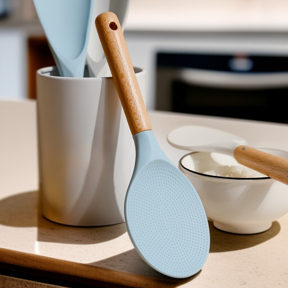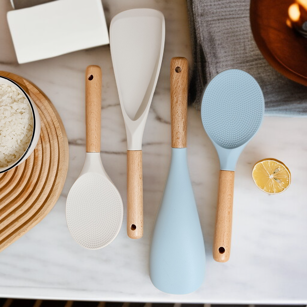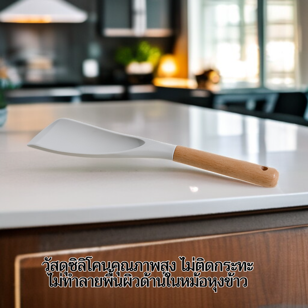 ไม้พายซิลิโคนสไตล์มินิมอลทันสมัย ด้ามไม้ ตั้งได้ ไม่ติดข้าว สำหรับหม้อหุงข้าว