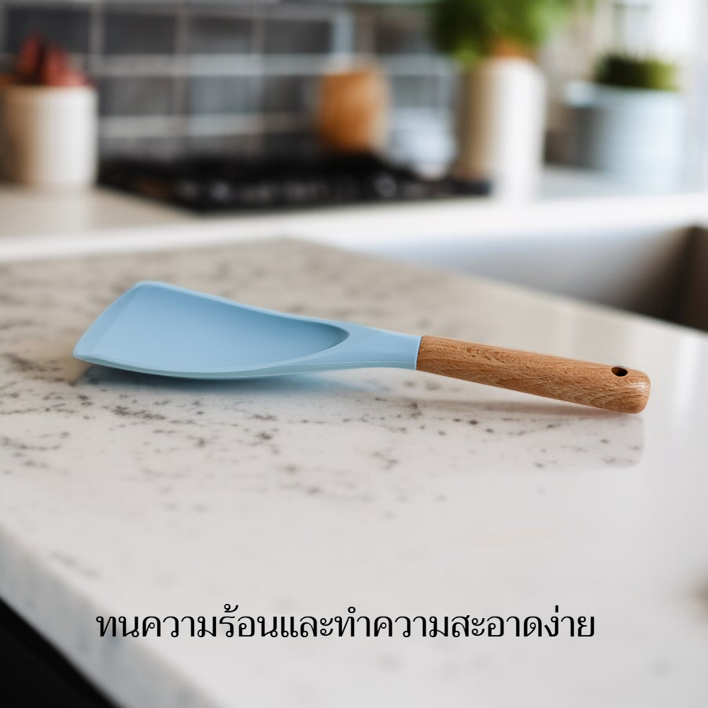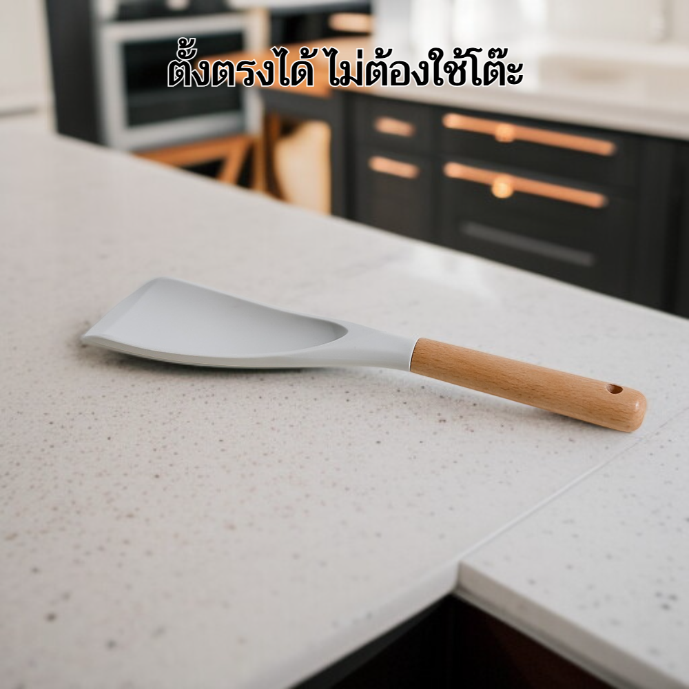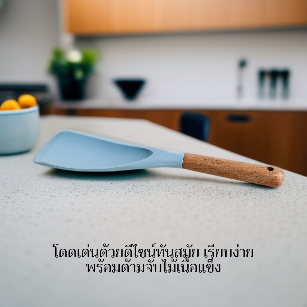 ● ไม้พายซิลิโคนดีไซน์มินิมอลทันสมัย ด้ามจับไม้เนื้อแข็ง จับถนัดมือ ใช้งานง่าย เพิ่มความสวยงามให้ห้องครัวของคุณ